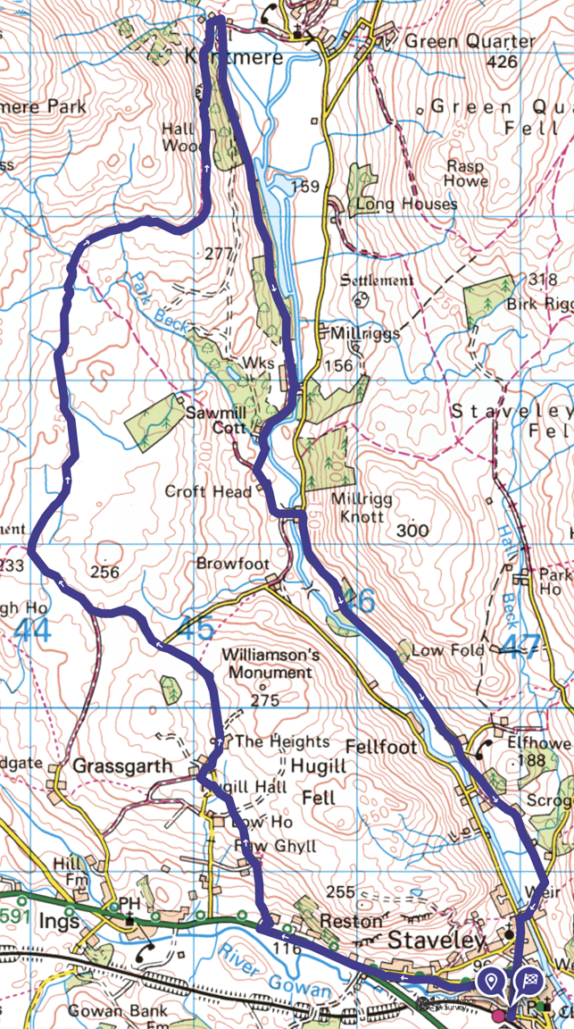 An undulating and lengthy walk from Staveley to the small village of Kentmere, with its fortified 14th century Kentmere Hall. The return mostly follows the Kent valley. The walk is 10 miles in length, taking around 4-5 hours, with 880ft of ascent. You can reduce the walk by 2 miles by taking the bridleway southeast to Croft Head, where you pick up the path crossing the River Kent and following the road down the valley.